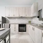 На оборудованной кухне предусмотрен тостер и духовка.